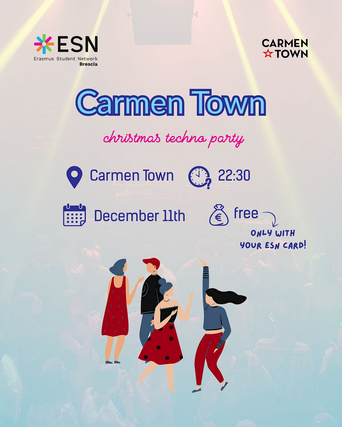 Il Giovedì con ESN in Carmen Town, serata danzereccia che ospita i ragazzi dei vari progetti Erasmus presenti in città. A Stassera!