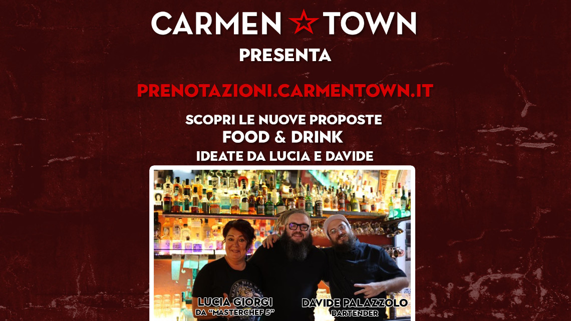 Inizia un nuovo modo di conoscere ed apprezzare l'offerta di Carmen Town che si affianca ai suoi piatti tradizionali per i quali è conosciuto ed amato.